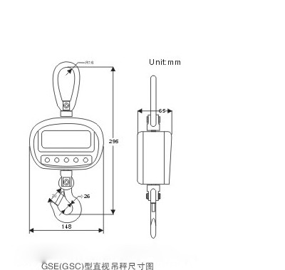 产品执行标准:GB/T 11883-2002 准确度等级: 国家标准Ⅲ级 量程:300kg、500kg、1吨、2吨、3吨 读数稳定时间:<10秒 最大安全载荷:150%最大称量 显示屏规格: GSE系列,超高亮15 mm字高5位红色LED显示 GSC系列20 mm字高5位LCD带背光液晶显示 旋 转:360度旋转式安全吊钩设计 环境温度:-10℃~40℃ 环境湿度:30%~90%RH 低电压指示:吊秤电量不足时低电压指示灯点亮 电 源: 四节AA/1.5V碱性电池、四节1.2V镍氢/镍镉电池(可选件)、7.4V/2AH锂电池(可选件) 充电器: 输入AC100~240V,输出DC8.4V/500mA(可选件) 自动关机:吊秤显示零点静置30分钟或电量严重不足时将自动关机 外 壳:安全工程塑料制造,防腐、抗静电、重量轻 按 键: 轻触式按键