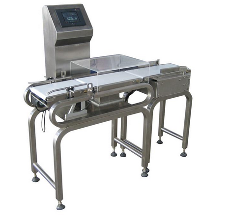 自动分选检重秤以高速度之动态重量读取方式检出生产线上的产品之重量,可以精确的检测出连续生产线中重量不合格的产品,并依此执行上下线判别或重量自动分选之控制,特别适用于包装产品中的缺件检查。包装产品通过检重秤称重检测,合格的送回原有输送带,不合格的予以剔除(或报警停机),并且具有根据设定对产品进行分类和统计、自动提供反馈信号调节修正加料设备、文字显示故障报警信息、多种图形统计显示等功能。可节省人力、提高效率,避免因包装过量导致无谓之损失或因重量不足而引起之客户抱怨,以提升客户之满意度,为自动生产线及包装线上之最佳品检设备。